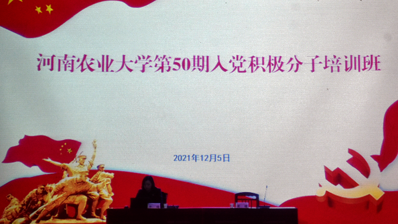 举办了第50期入党积极分子培训班开班仪式。按照疫情相关要求,本期培训采取线上线下相结合的方式。线下由动物科技学院在图书馆一楼报告厅设立主会场,其他单位采用化整为零的方式通过线上同步组织观看学习。