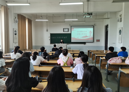 学生党员张梦瑶首先向全体党员分享了《关心群众生活,注意工作方法》这一章的一段话:一切群众的实际生活问题,都是我们应该注意的问题。假如我们对这些问题注意了,解决了,满足了群众的需要,我们就真正成了群众生活的组织者,群众就会真正围绕在我们的周围,热烈拥护我们。紧接着讲述了共产党员的光辉成就,并向与会党员展示自身心得体会,加深与会党员对毛选原著的认识、理解,引发了共鸣,在字里行间之中领悟信仰的力量。