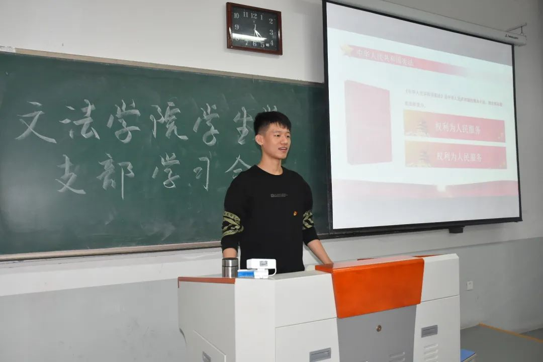 党课开始,学生党员陶磊就宪法学习与教育专题进行PPT演讲。