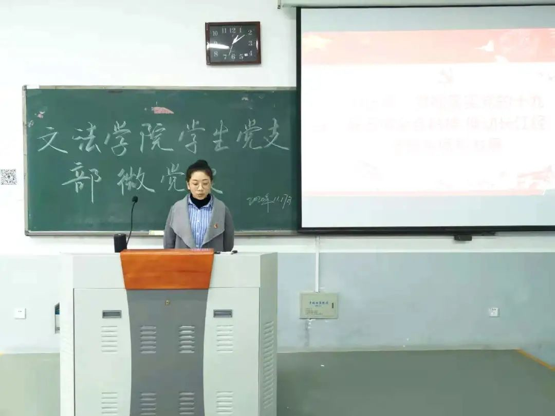 学生党支部于11月17日在繁塔楼开展了此次党日活动,引导学生党员学习和落实十九届五中全会精神。
