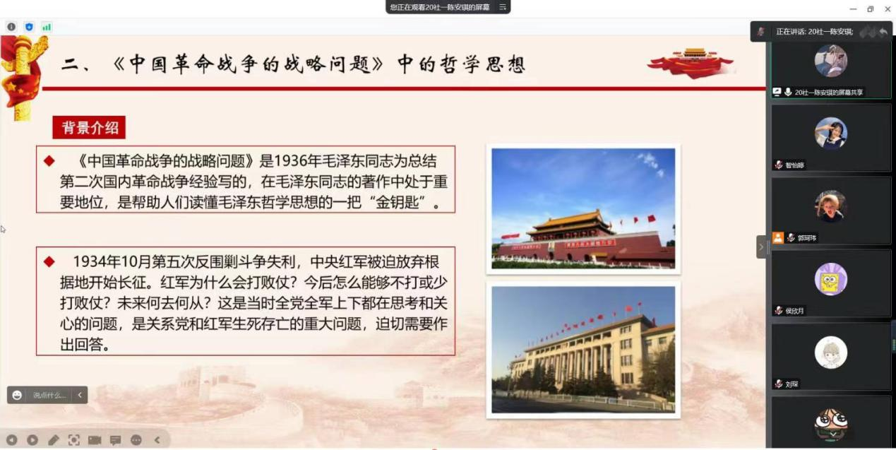 本次线上党课获得了参会学生党员的热烈反响,取得了良好的教育意义,提高了学生党员对毛泽东思想的理解,提高了其运用马克思主义理论与实践相结合的能力。学生党员表示,要积极贯彻党的思想,用理性思维学习党的精神,以党的思想建设为引领,促进自身发展,为党的事业奋斗终身。(素材/91自拍 党建办)