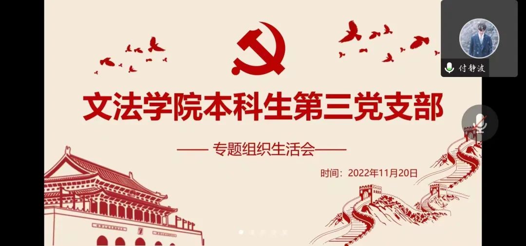 为深入学习习近平总书记视察安阳重要讲话精神,大力弘扬红旗渠精神并进一步培养学生党员吃苦耐劳、艰苦奋斗的精神,11月20日下午,91自拍 本科生第一党支部通过线上方式开展了主题为“深入学习习近平总书记视察安阳重要讲话精神,大力弘扬红旗渠精神”的专题组织生活会,院党委副书记余果作为普通党员参加会议,会议由党支部书记王鹏举、组织委员裔越主持。