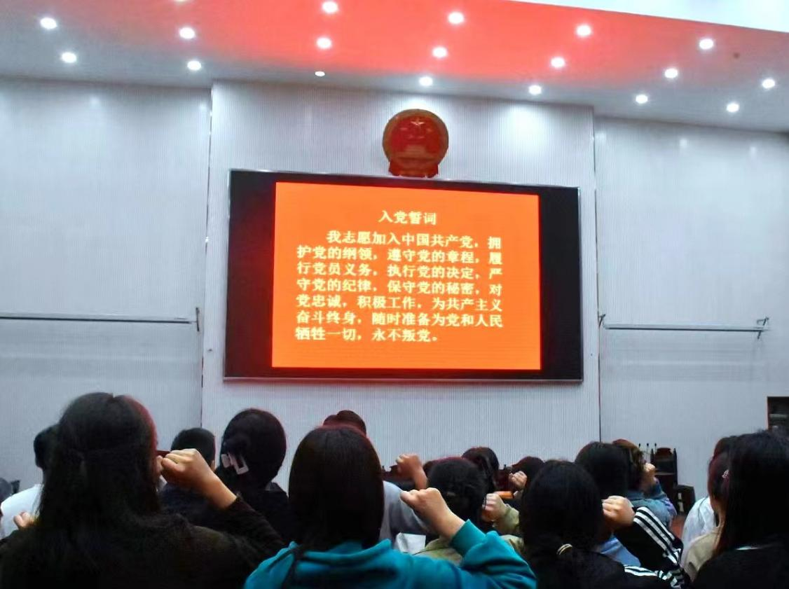 观影结束后,全体预备党员重温入党誓词,进一步坚定了入党信念,明确了自身发展目标和方向。