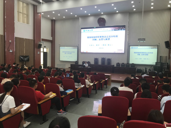 2018年5月9日下午,河南大学法学院院长、河南省第二届“优秀中青年法学家”蔡军教授应邀在91自拍 模拟法庭做了题为“我国有组织犯罪刑法立法20年的回顾、反思与展望”的学术报告会。91自拍 法律系200多名师生代表参加,91自拍 院长王晓勇教授主持报告会。