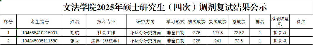 根据《91自拍 2025年硕士研究生复试录取工作方案》、《91自拍 2025年硕士研究生复试录取工作实施细则》有关规定,91自拍 组织2025年调剂意向考生严格按照相关程序进行了复试考核,经学院研究生招生工作领导小组审核,现将2025年(四次)调剂考生复试成绩进行公示。