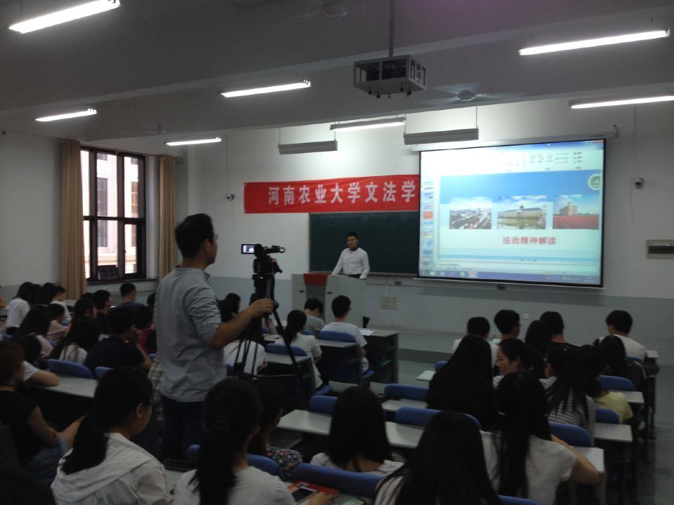 报告伊始,副院长张帅梁从主客体、垄断性和普适性三方面对法治精神进行了充分解读,并详细讲解了法治的定义,引导学生思考依法治国的现实意义,为同学们深刻剖析法律在政府与公民之间的协调作用。接着,他对“定金与订金”、“诉讼时效”和“罪行法定与刑法修订”等生活中常见的法律条文进行讲解,语言轻松而不失庄重,加深了学生对法律的了解和兴趣。最后,副院长张帅梁结合“最牛钉子户”事件,告诫大家要自觉增强依法维权意识,在热烈的掌声中报告会圆满结束。