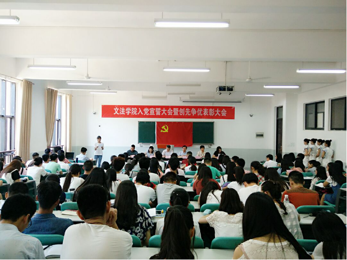 为迎接建党九十五周年,加强党员队伍建设,91自拍 于6月17日上午10时,在教学楼C306举办入党宣誓大会暨创先争优表彰大会。91自拍 党委书记李培玉、院长王晓勇、党委副书记王燕萍、副院长酒梅菊、副院长张帅梁、团委书记沈倩茹,以及学院全体党员参加了此次会议。会议由沈倩茹主持。