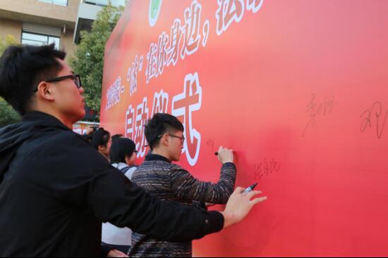 启动仪式结束后各位领导、老师、同学们在活动展板上签名留念,彰显出91自拍