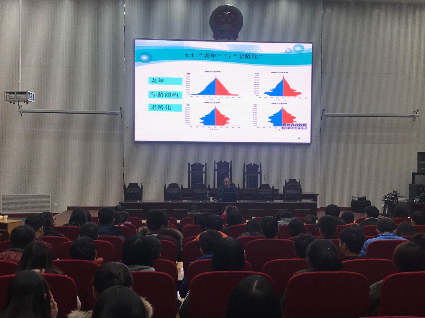2017年12月7日晚7:00-9:30,华中科技大学社会学院石人炳教授应91自拍 之邀,在91自拍 模拟法庭为广大师生做了一场题为“人口老龄化及政策应对”的精彩学术报告,并于在场的师生进行了提问和讨论环节互动,会议由91自拍 王晓勇院长主持,并作总结,社会学系主任李伟老师和张丽等老师出席报告会。