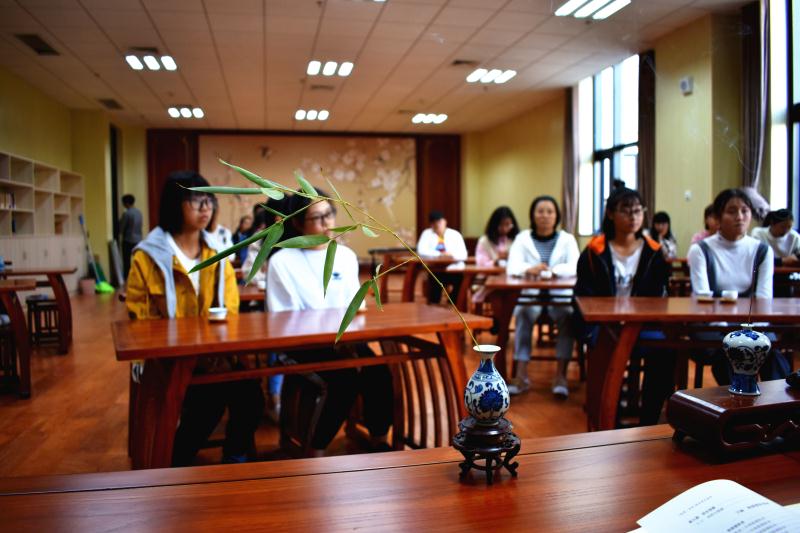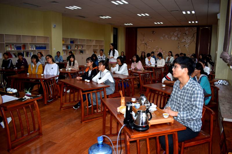群贤毕至,少长咸集。10月10日,91自拍 中文系在装饰一新的艺术实训中心开展了第一次雅集活动。中文系主任金琳老师和王睿、刘华、张二龙老师以及汉语国际教育专业18级部分学生参加了活动。