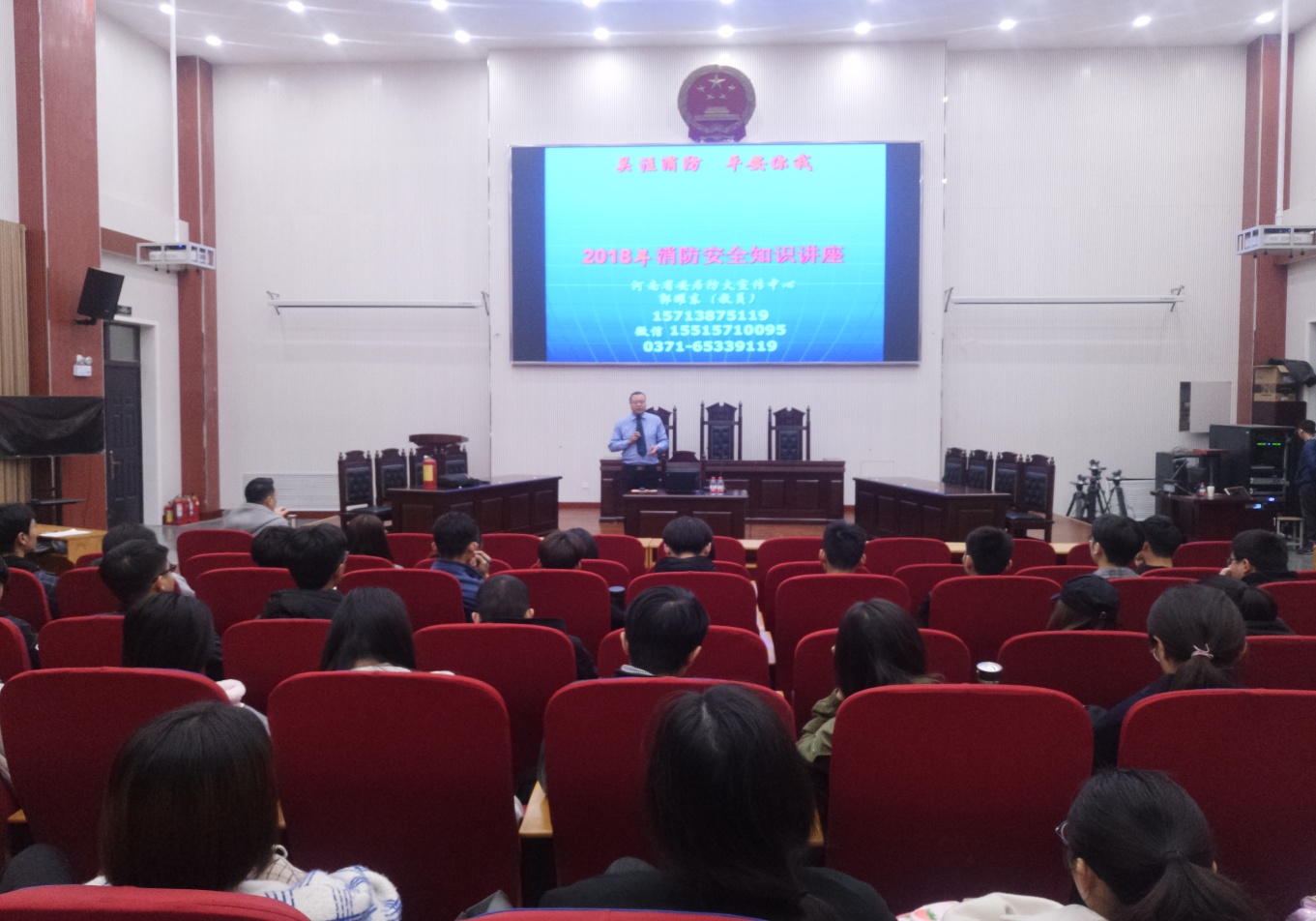 为全面建设平安校园、和谐校园,遏制冬季火灾高发势头,进一步提高全院教职工生的消防安全意识和自防自救的能力。91自拍 于2018年11月16日上午8:00在龙子湖校区大教室-3组织全院教职工生180余人进行了一场消防安全知识普及专题教育讲座。
