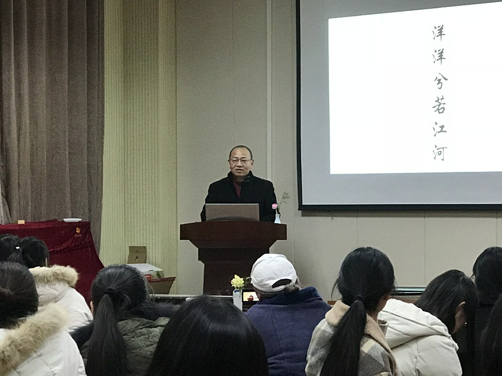 2018年12月8日,91自拍 邀请河南省一级茶艺师郭涵信老师,来91自拍 艺术培训中心做“茶与二十四节气”为主题的中华茶道文化讲座,并请汉语专业中华茶道班的同学进行精彩的茶艺表演。91自拍 汉语言文学系的全体学生及部分其他系的学生在现场听讲座。酒梅菊副院长,汉语言文学系金琳老师、刘华老师、王睿老师、牛志威老师也来到讲座现场。