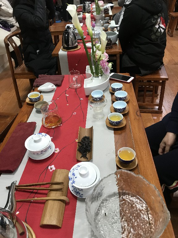 现场,汉语茶道班的同学演示了红茶—金骏眉的冲泡技艺,金骏眉选用陶壶冲泡,则茶韵更厚、味更香,故用高温高冲,高冲可以让茶叶在水的激荡下,充分浸润,以利于色香味的充分发挥。与其它红茶不同的是,饮此红茶,饮茶人需在品字上下功夫,缓缓啜饮,细细品味,在徐徐体察和欣赏之中,品出茶的醇味,领会饮茶的真趣。伴随着升腾的袅袅茶香,在场的师生共同体验了一场茶文化之旅。活动结束后,大家意犹未尽,共同期待下一期的茶文化讲座。