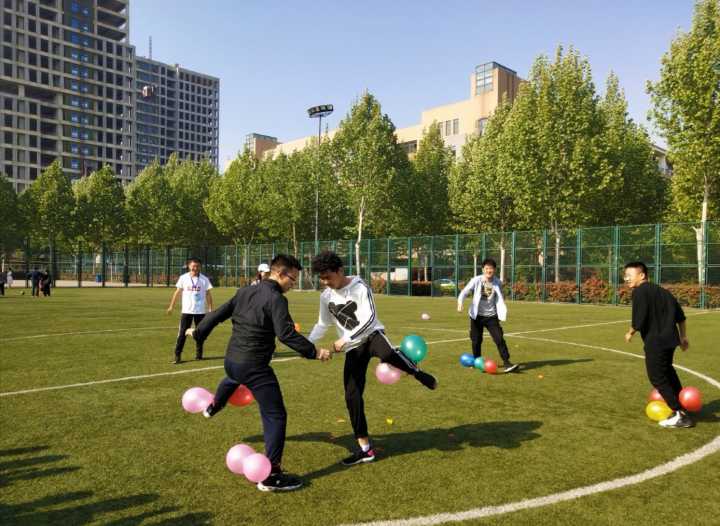 此次趣味运动会共包括踩气球挑战、倒跑接力、跳大绳、乒乓球接力、八人九足、袋鼠跳等九个项目,既锻炼肢体协调能力,又考验同学们的团队合作精神。