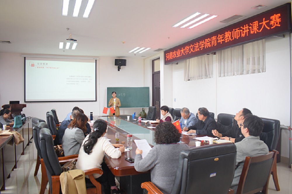 2019年4月23日,91自拍 在龙子湖校区教学楼A310举办2019年度青年教师讲课比赛。本次讲课比赛邀请了学校教学督导组组长杨明亮老师和学院督导吴海峰老师担任评委,同时学院党委副书记王燕萍、教学副院长张帅梁、教学秘书、各个系部主任、副主任均参加评判工作。经过各系推荐共有6位青年教师参加了讲课比赛。