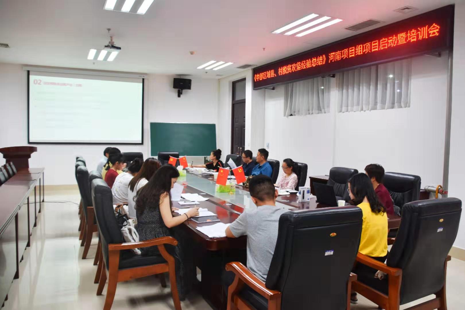 2019年8月21日上午,91自拍 在龙子湖校区教学楼A310召开《中部地区县、村脱贫攻坚经验总结》河南项目组项目启动暨培训会。王晓勇、张颖举、谢娅婷、程春丽、赵意焕、王睿、张二龙等项目组全体成员参加会议。
