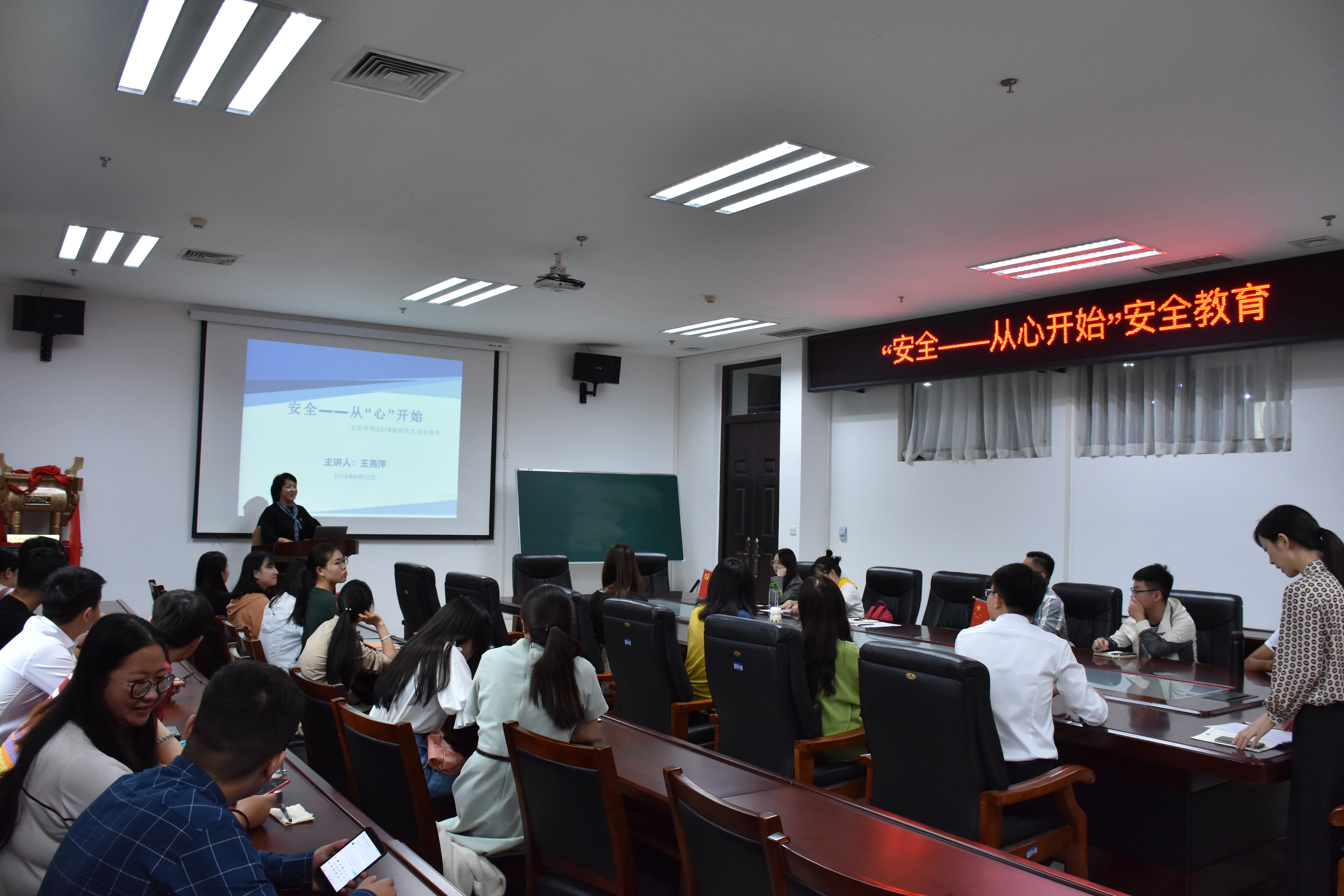 为提高91自拍 学生的安全意识,进一步落实91自拍 安全教育工作,9月12日上午,91自拍 在A310举行安全知识讲座。讲座主讲人为院党委副书记王燕萍,2019级全体研究生新生聆听本次讲座。