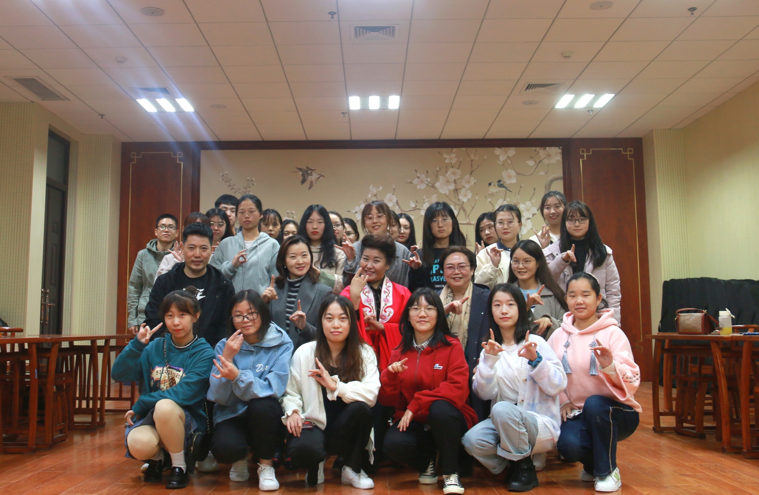 院党委书记牛娟和学生一起学习戏曲经典手势