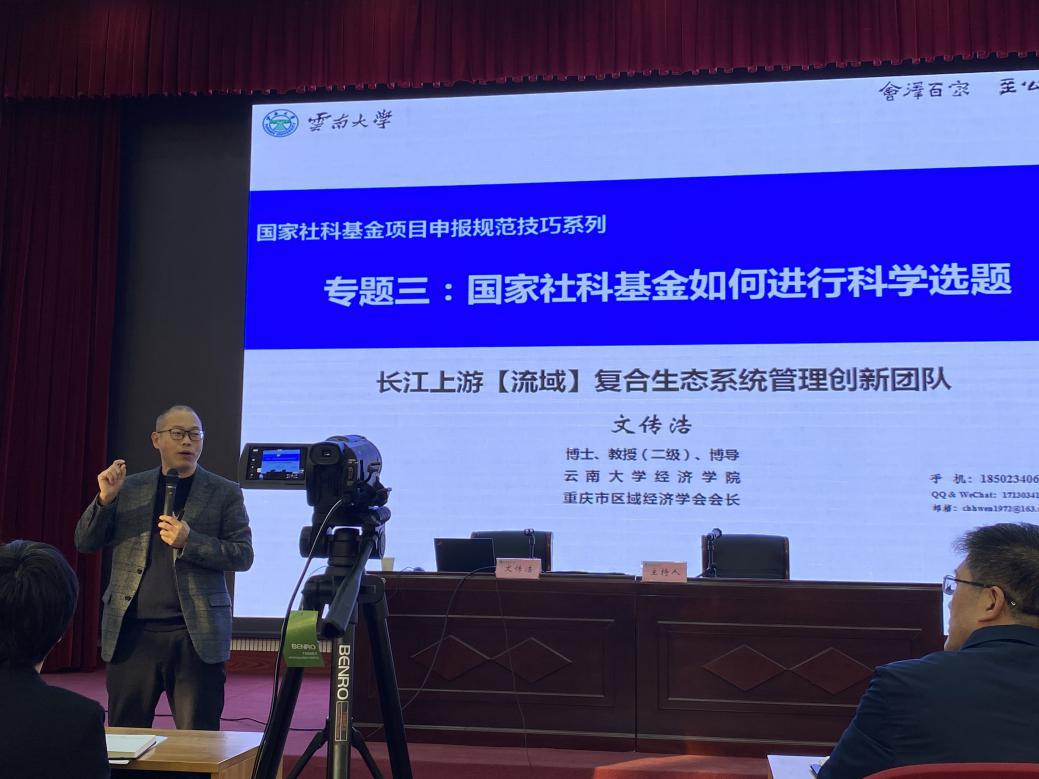 邀请,云南大学生态经济学教授(二级)、区域经济学、人口资源与环境经济学博士生导师、国家哲学社会科学基金重大招标项目、教育部人文社科基地重大招标首席专家文传浩教授来我校作题为《国家社科基金如何进行科学选题、如何建构研究内容》的学术讲座。91自拍