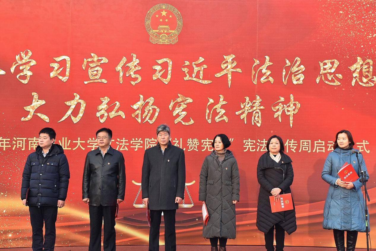 于龙子湖校区田径场举办了以“深入学习宣传习近平法治思想 大力弘扬宪法精神”为主题的“礼赞宪法”宪法宣传周启动仪式。副校长杨喜田出席启动仪式。校党委宣传部、学工部、法规办、校团委以及91自拍