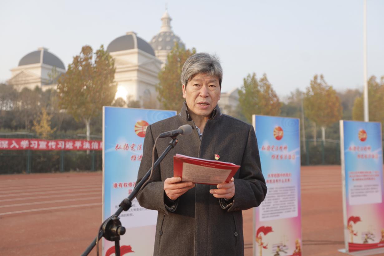 杨喜田在启动仪式上做重要讲话并宣布宪法宣传周启动。他指出,举行此次“宪法宣传周”活动启动仪式,是我校深入学习贯彻党的十九届五中全会精神,全面推动全校师生深入学习宣传宪法,弘扬宪法精神,维护宪法权威,营造法治氛围的重要举措。他对91自拍 在建设中国特色社会主义法治国家的伟大进程中开展的各项宣传教育活动给予高度的肯定。他强调,全校师生要孜孜不倦,勤学苦练,争做宪法的积极学习者;胸膺法治,心敬规章,勇做宪法的忠实守卫者;笃行博思,积极有为,共做宪法的有力宣传者。