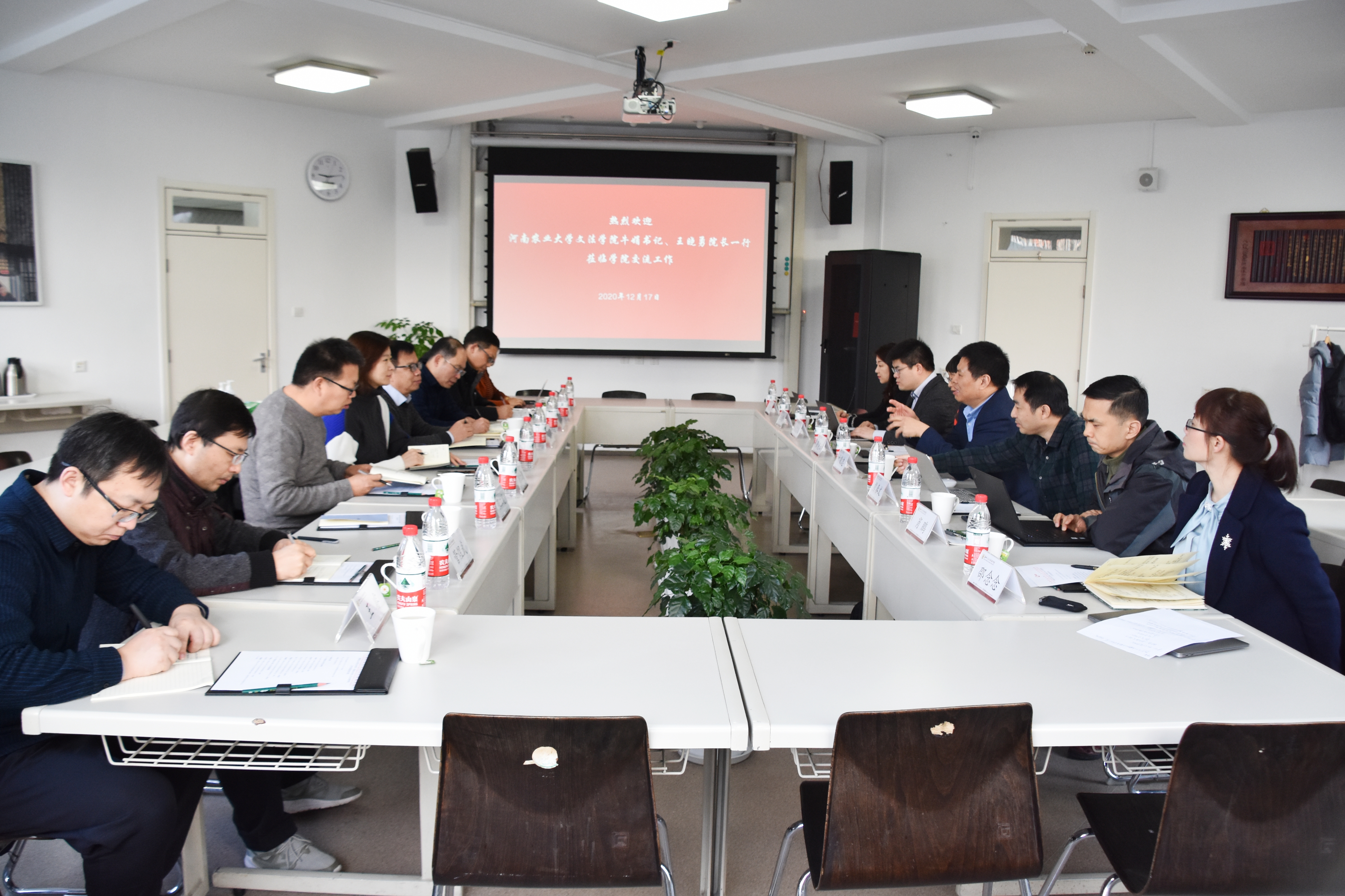 党委书记牛娟、院长王晓勇、副院长杨红朝、副院长李伟、院党政办主任张二龙、行政管理系主任管煜武、法律系教工党支部书记韩宁、中文系副主任王睿、社会学系副主任谢娅婷一行赴中国农业大学人文与发展学院调研考察。