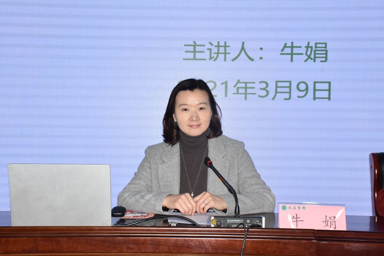 在龙子湖校区教学楼大教室1举行“繁塔哲思 信仰起航”2021春季开学第一课活动。学院党委书记牛娟为学生讲授第一节思政课,学院全体学生通过线上线下两种形式同步观看。