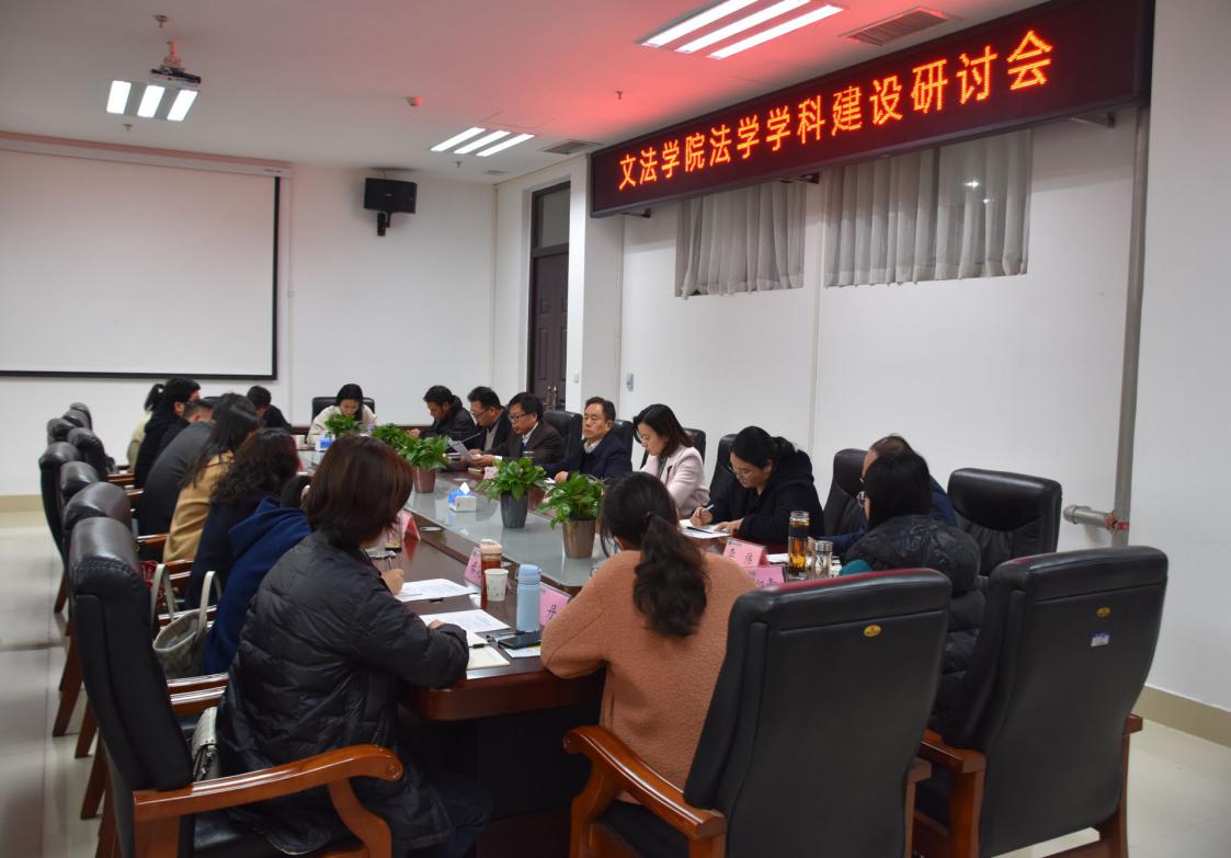 法学学科发展把脉问诊。校政策法规办公室副主任张帅梁、学院领导班子以及法律系全体教师参加研讨会。