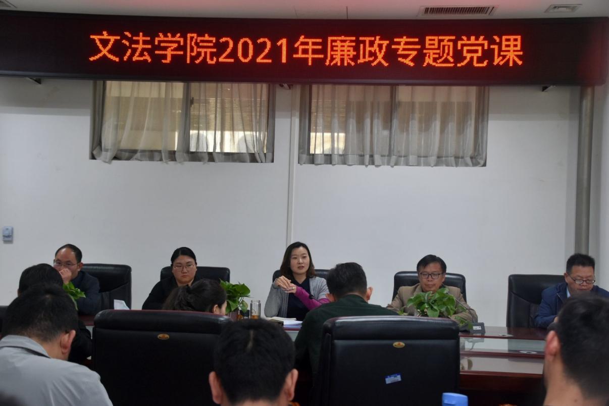 随后,牛娟领学了《以案明纪》案例汇编,并为全体教师讲授廉政专题党课。她指出,作为一名党员领导干部,作为一名人民教师,应该常修为政之德,常怀律己之心,时刻保持警惕,自觉抵制歪风邪气。她强调,让全面从严治党引领学院事业发展必须做到四个下功夫,一是必须在准确把握全面从严治党新要求上下功夫,准备认识和把握当前反腐败形势;二是必须在彰显严管厚爱上下功夫,弘扬正能量,积极践行“第一种形态”;三是必须在营造良好的政治生态上下功夫,领导干部要带头,坚决履行“三个区分开来”;四是必须在提升道德品质上下功夫。面对诱惑,要敢于拒绝,坚守底线。