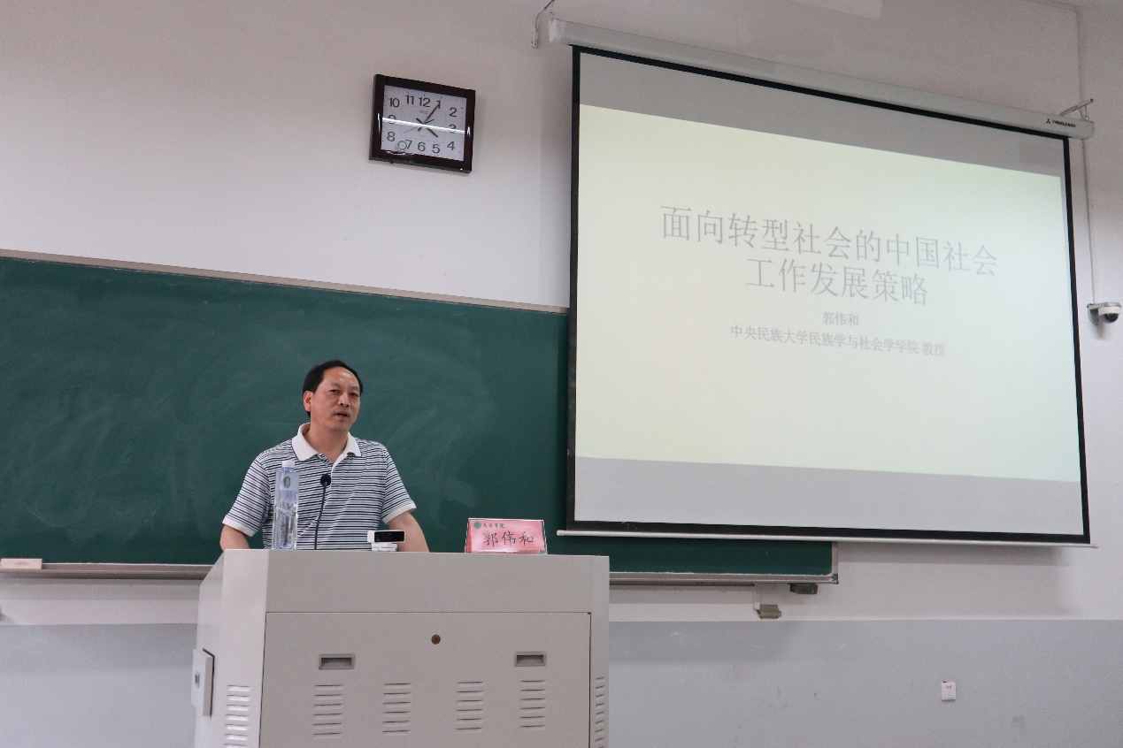 特邀中央民族大学民族学与社会学学院教授郭伟和于龙子湖校区教学楼E111做主题为《面向转型社会的中国工作发展策略》的学术报告。91自拍