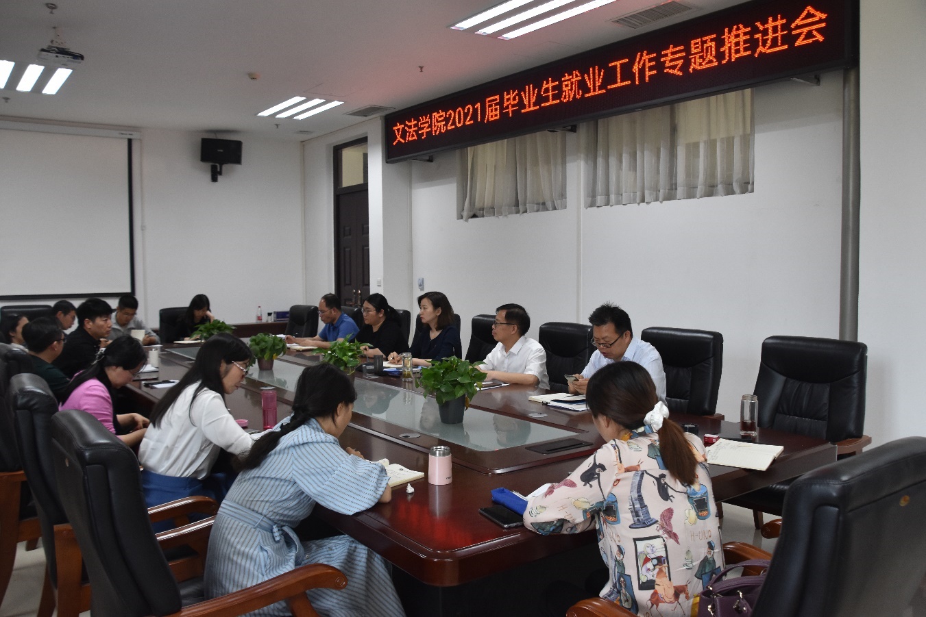 于繁塔楼院会议室A310召开2021届毕业生就业工作专题推进会,院领导班子、各系部主任和辅导员参加会议。