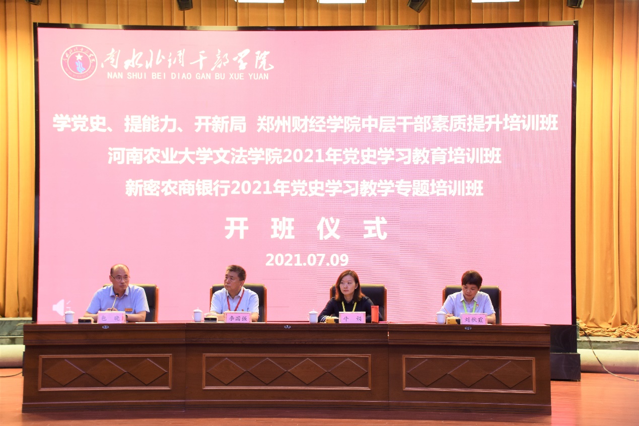 9日下午,开班仪式在南水北调干部学院综合楼一楼报告厅举行。南水北调干部学院党委委员、副院长包晓在开班仪式上致辞,介绍了南水北调中线工程和南水北调干部学院的基本情况。随后,包晓和学院党委书记牛娟共同为参训学员代表授旗。开班仪式后,南水北调干部学院培训联络部部长郭度以《南水北调精神及其时代价值》为题作报告。他从南水北调工程50余年的发展概况、南水北调精神的实质、时代价值和如何结合党史学习教育弘扬南水北调精神等方面进行了深刻分析。使老师们深刻感受到了南水北调精神内涵和国家重大战略性工程的时代价值。