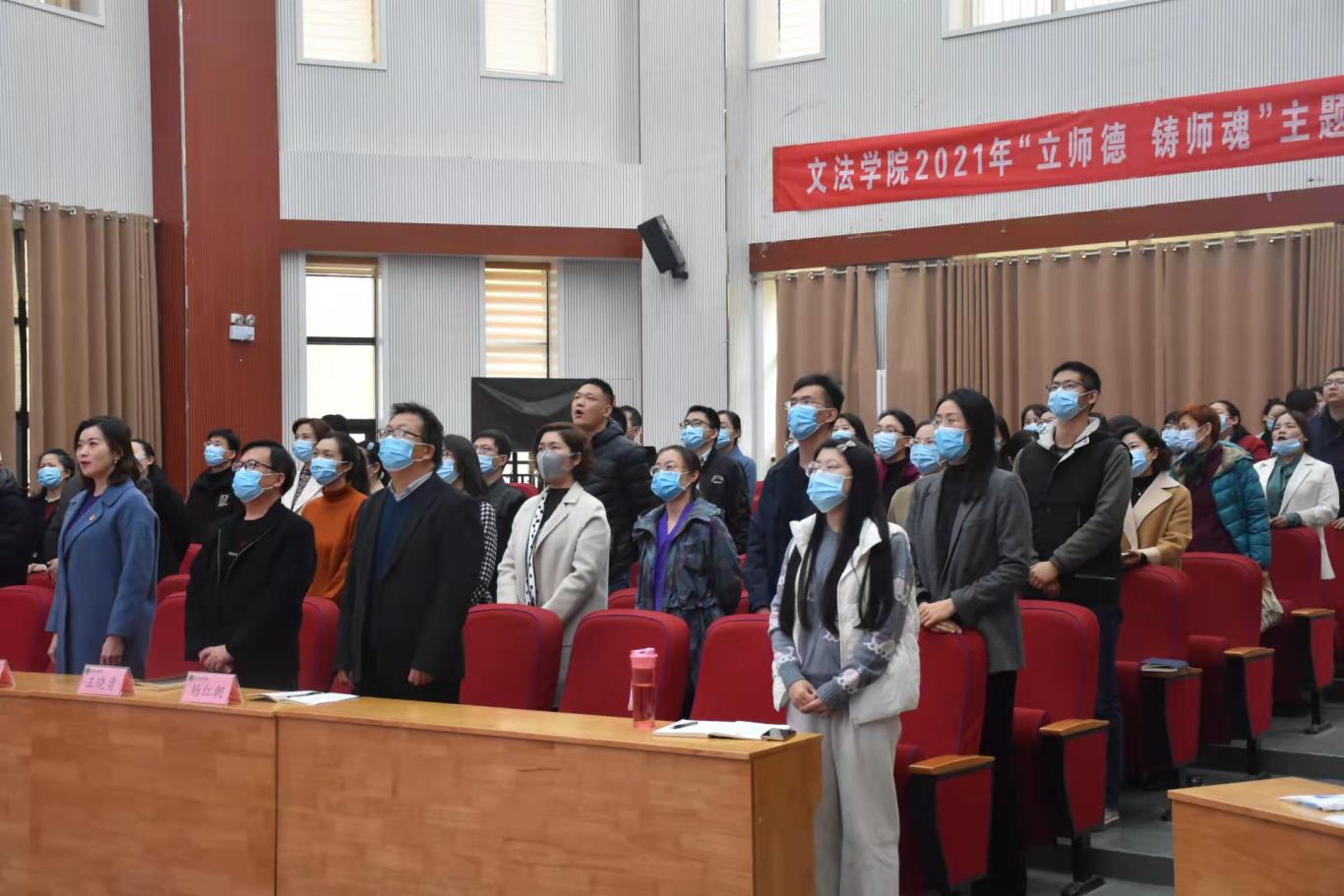 在龙子湖校区模拟法庭开展了“立师德 铸师魂”主题道德讲堂活动。教务处副处长兼党委教师工作部副部长王金铎出席活动,学院领导班子及全体教职工参加此次活动。此次活动由行政管理系教师王妍主持。