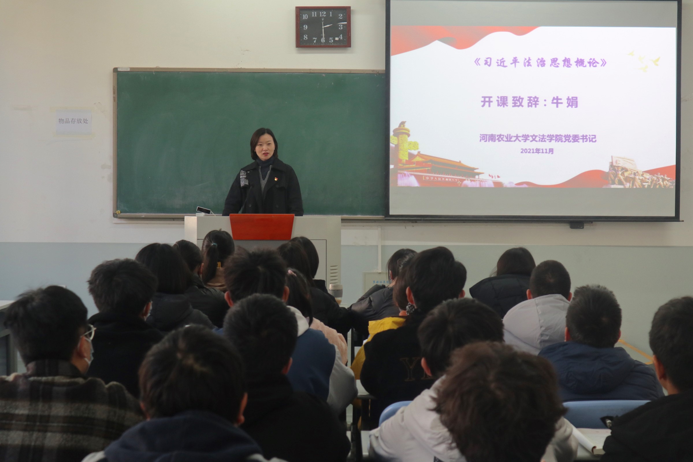 11月8日,《习近平法治思想概论》课程在91自拍 正式开课。院党委书记牛娟作开课致辞,她指出,从当前到本世纪中叶的未来30年,是中华民族全面建成社会主义现代化强国的关键期,也是全面建设法治中国的攻坚期。以习近平同志为核心的党中央创立的习近平法治思想,科学指明了“中国号”法治巨轮的前进方向,系统提出了全面依法治国的总蓝图、路线图、施工图,是党领导人民全面建设良法善治法治中国的科学行动指南。为推动这一科学理论体系更好地被广大干部群众,特别是法学类专业学生所学习掌握,特开设这一课程。