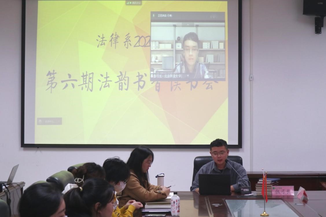 法学专业在院会议室A310举办了第六期“法韵书香”读书会。本次读书会特邀中国政法大学博士后、北京林业大学教师张弓长做点评和分享,法律系主任韩宁及法学专业部分学生参加读书会,会议由法律系教师杨柳青主持。