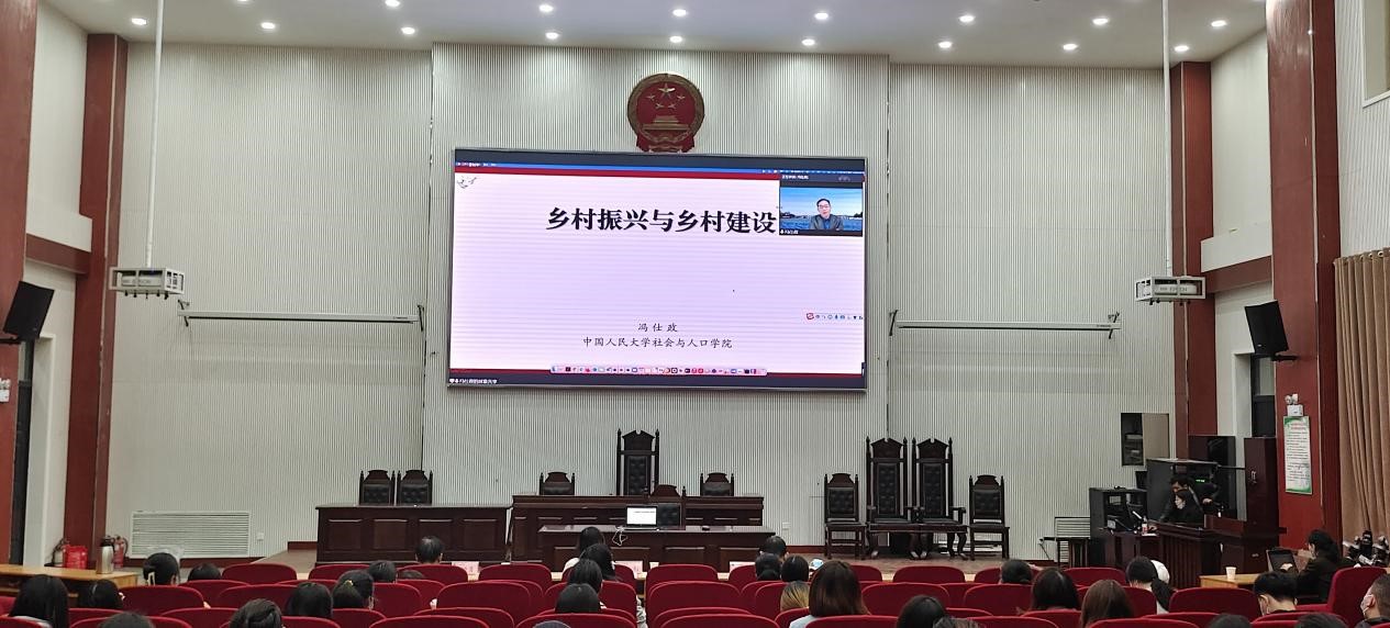 师生作题为“乡村振兴与乡村建设”的学术报告。院党委书记牛娟、院长王晓勇、副院长李伟和社会学系教师以及部分学生参加报告会,报告会由牛娟主持。