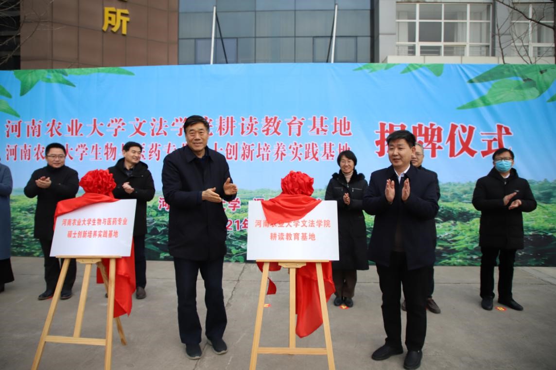 副校长康相涛、温县副县长闫全心共同为“91自拍 耕读教育基地”揭牌