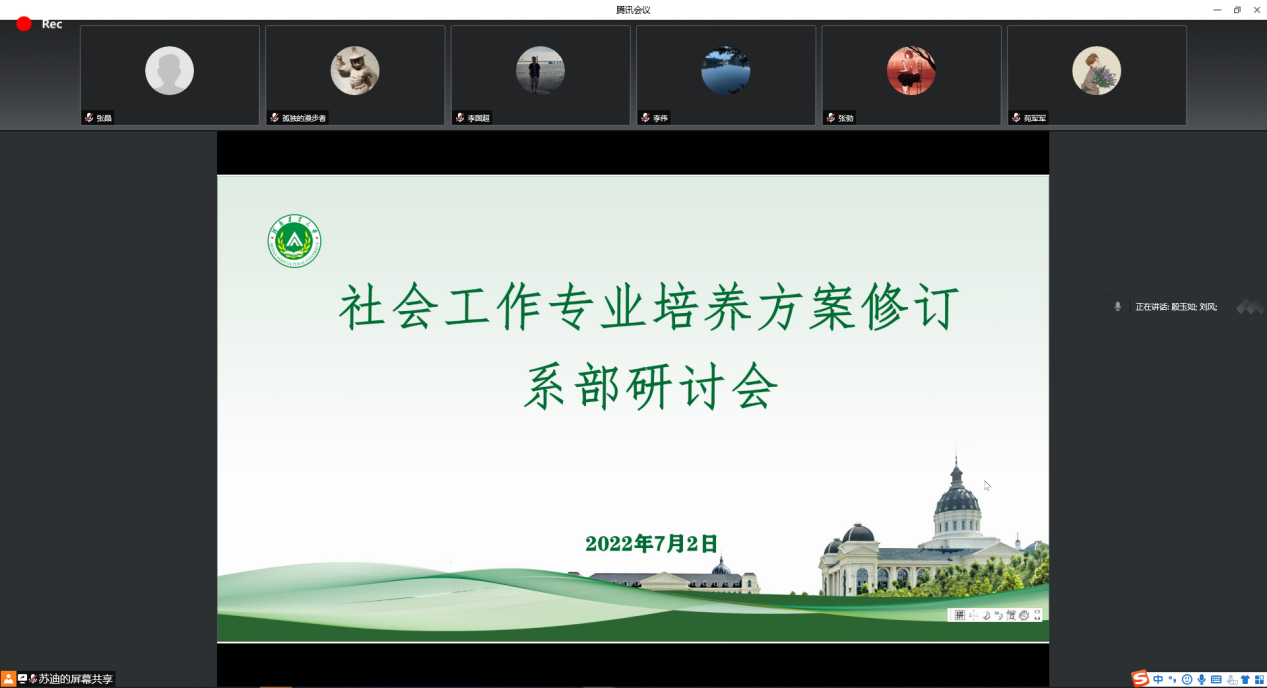 工作安排,社会学系举行社会工作专业培养方案修订研讨会。研讨会采用线上方式进行,社会学系全体教师参加会议,会议由系主任刘风主持。