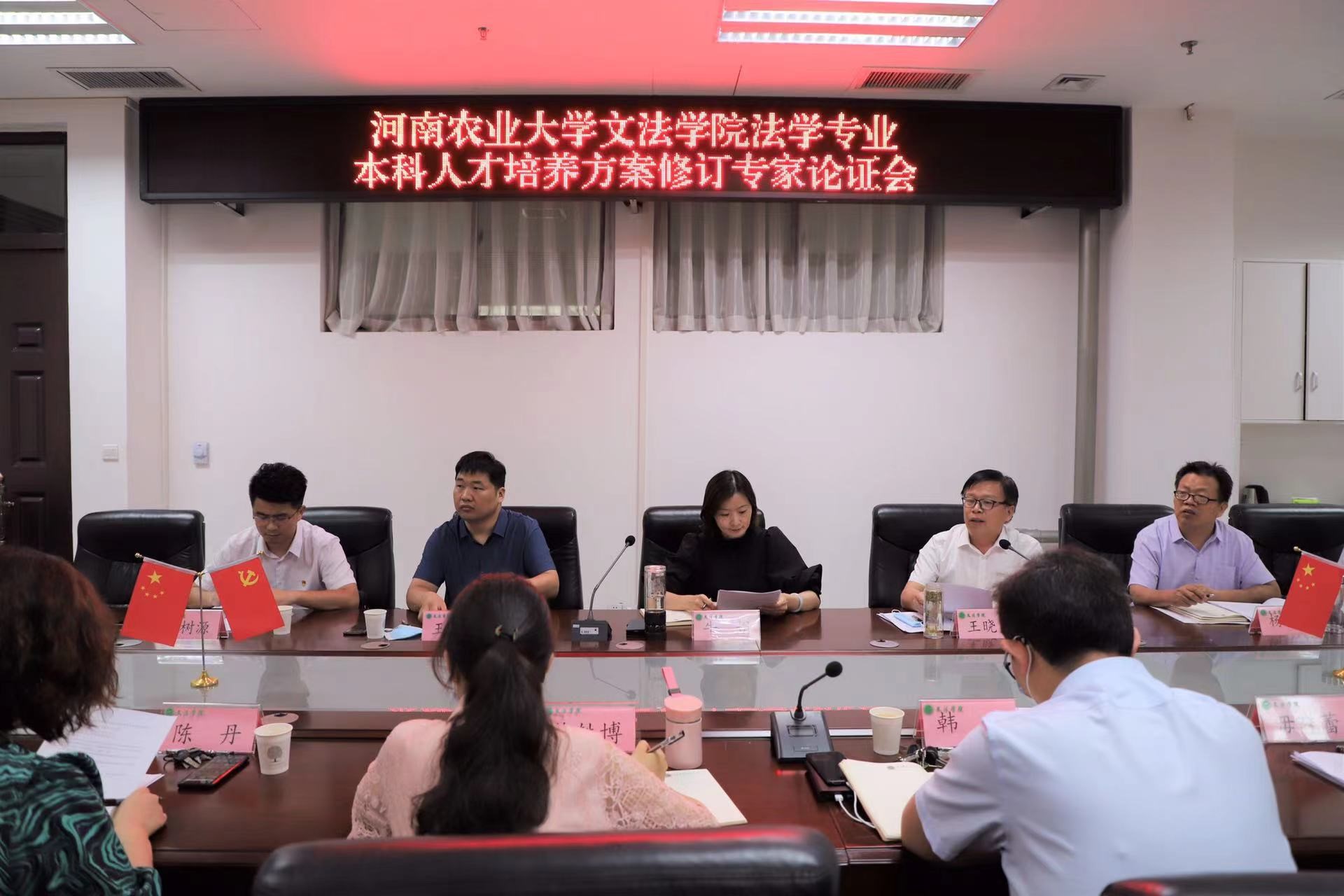 在龙子湖校区教学楼A310会议室通过线上线下相结合的形式举行法学专业本科人才培养方案修订专家论证会。国务院学位委员会第八届法学学科评议组成员、教育部高等学校法学类专业教学指导委员会副主任委员、西南政法大学付子堂校长提交了书面专家意见并在会上被宣读。国务院第八届法学学科评议组成员、教育部高等学校法学类专业教学指导委员会委员、北京航空航天大学人文与社会科学高等研究院(高研院)院长、博士生导师龙卫球教授,教育部高等学校法学类专业教学指导委员会委员、武汉大学法学院院长、博士生导师冯果教授,教育部高等学校法学类专业教学指导委员会委员、郑州大学法学院院长、博士生导师苗连营教授以及河南闻言律师事务所主任师树源,杰出校友、厦门大学法学博士杜志勇等受邀参会,教务处副处长王金铎、院党委书记牛娟、院长王晓勇、副院长杨红朝以及法律系全体教师参加会议。会议由王晓勇主持。