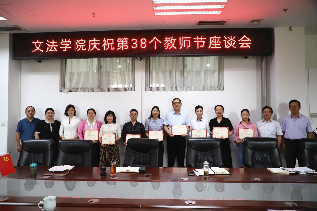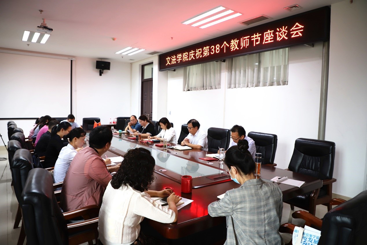 在龙子湖校区教学楼A310会议室召开2022年教师节座谈会。学院领导与教师代表欢聚一堂,共话教育事,共庆教师节。