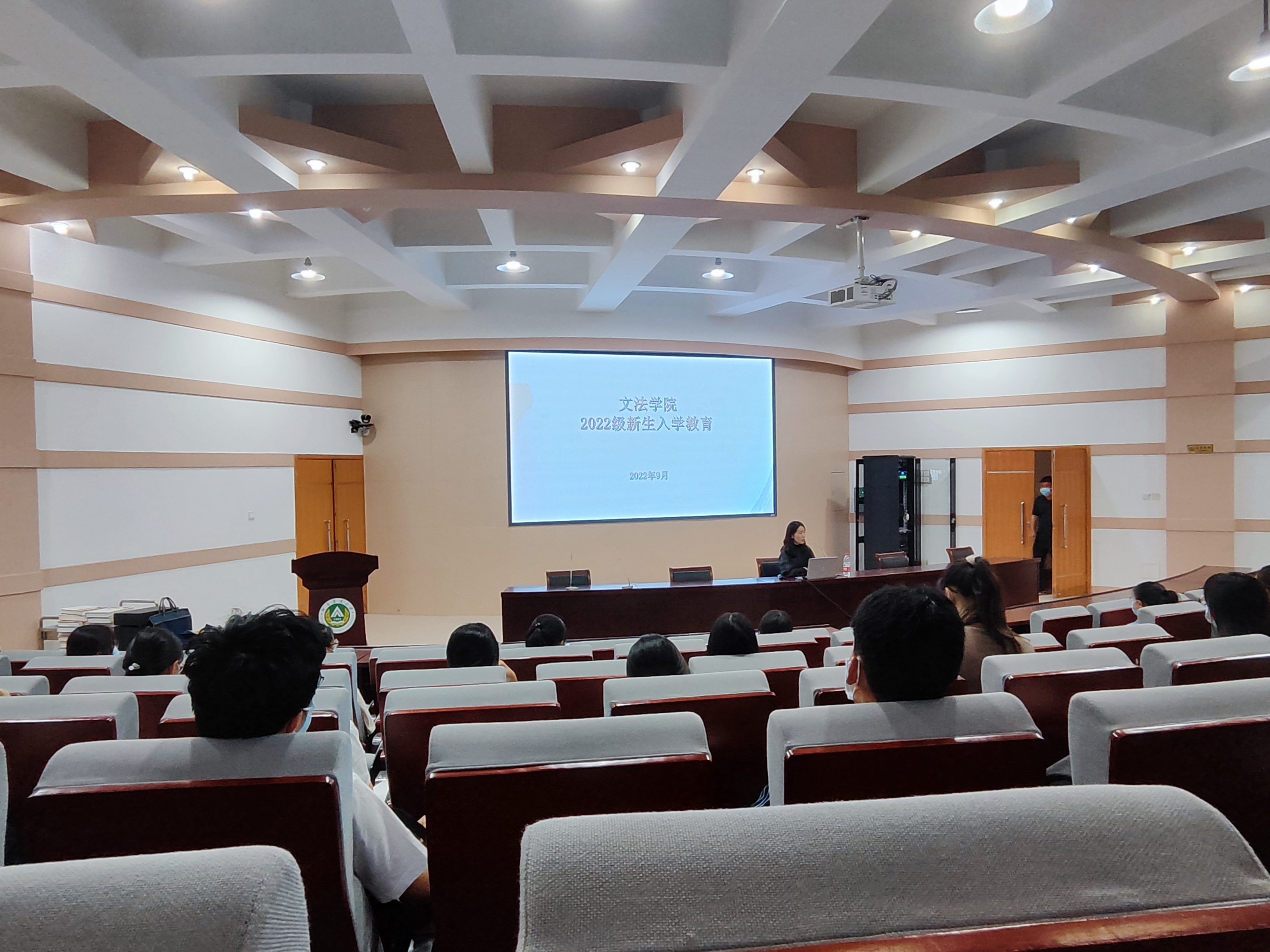 团委书记、2022级辅导员朱瑞萍于文化路校区300人报告厅分批次为全体新生作新生入学教育专题讲座。