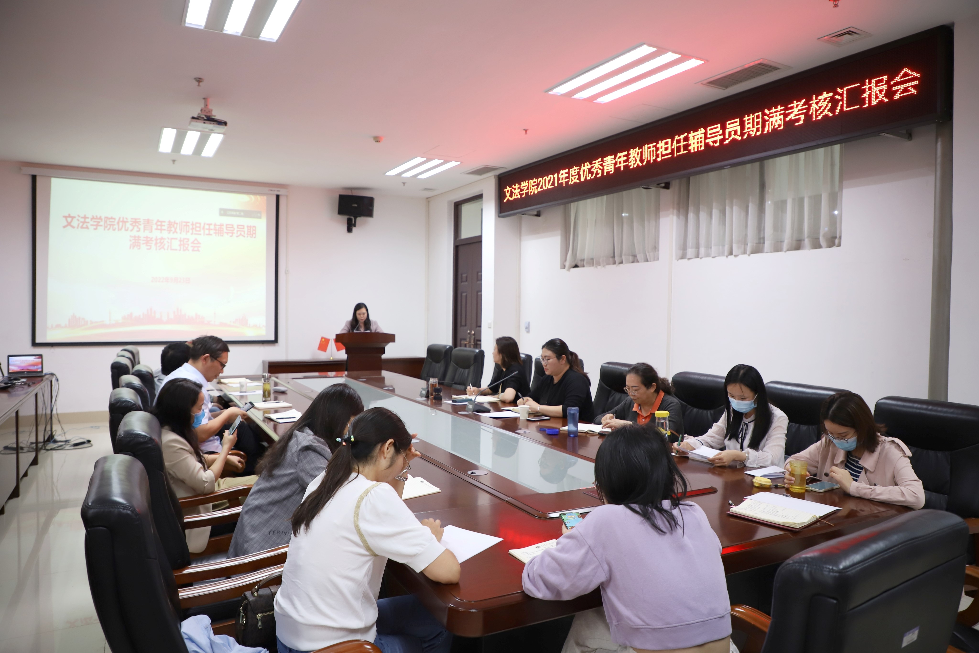 于龙子湖校区教学楼A310会议室召开2021年度优秀青年教师担任辅导员期满考核汇报会。本次考核会的评审组由院党委书记牛娟、党委副书记余果、团委老师、法律系和汉语言文学系全体教师等成员组成。会议由余果主持。
