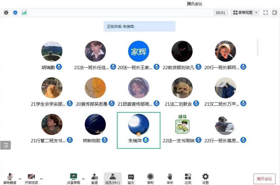 全体学生干部参加会议。会议由朱瑞萍主持。