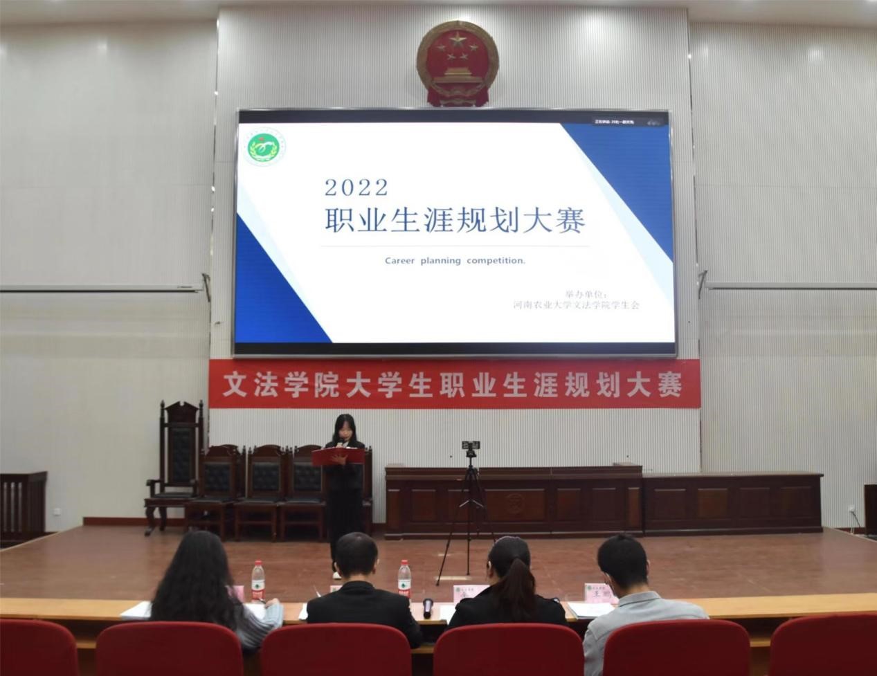 通过线上线下相结合的方式在模拟法庭举办“拟好职业生涯规划 赢得未来美好人生”大学生职业生涯规划大赛决赛。本次比赛由初赛晋级的十位学生进行最后角逐,院党委副书记余果、行政管理系主任管煜武和团委老师参与评审。