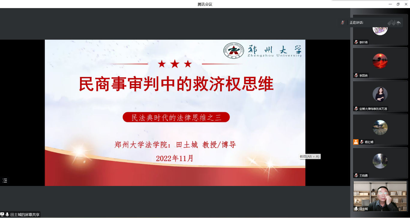 通过线上会议的方式举办以“民商事审判中的救济权思维”为主题的学术报告。本次报告由郑州大学田土城教授主讲,91自拍