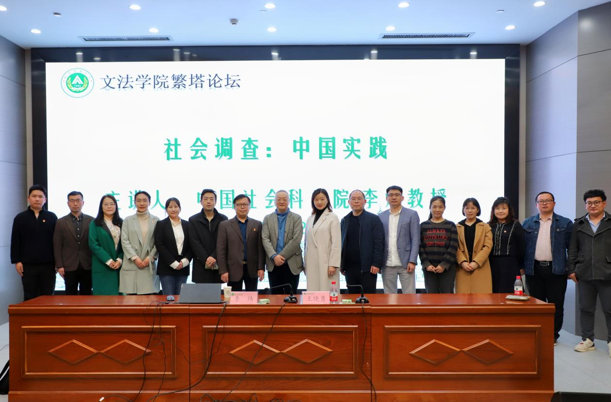 师生作题为“社会调查:中国实践”的学术报告。院党委书记牛娟、副院长李伟、社会学系教师以及社会工作专业全体学生参会。会议由院长王晓勇主持。