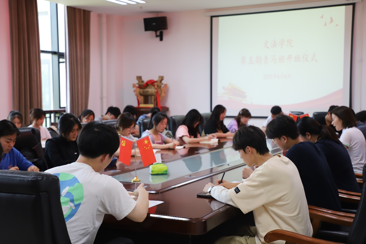 于龙子湖校区院会议室A310举办第五期青马班开班仪式暨开班第一课,院党委书记牛娟、院党委副书记余果出席,开班仪式由院团委书记王鹏举主持,第五期青马班全体成员参与。