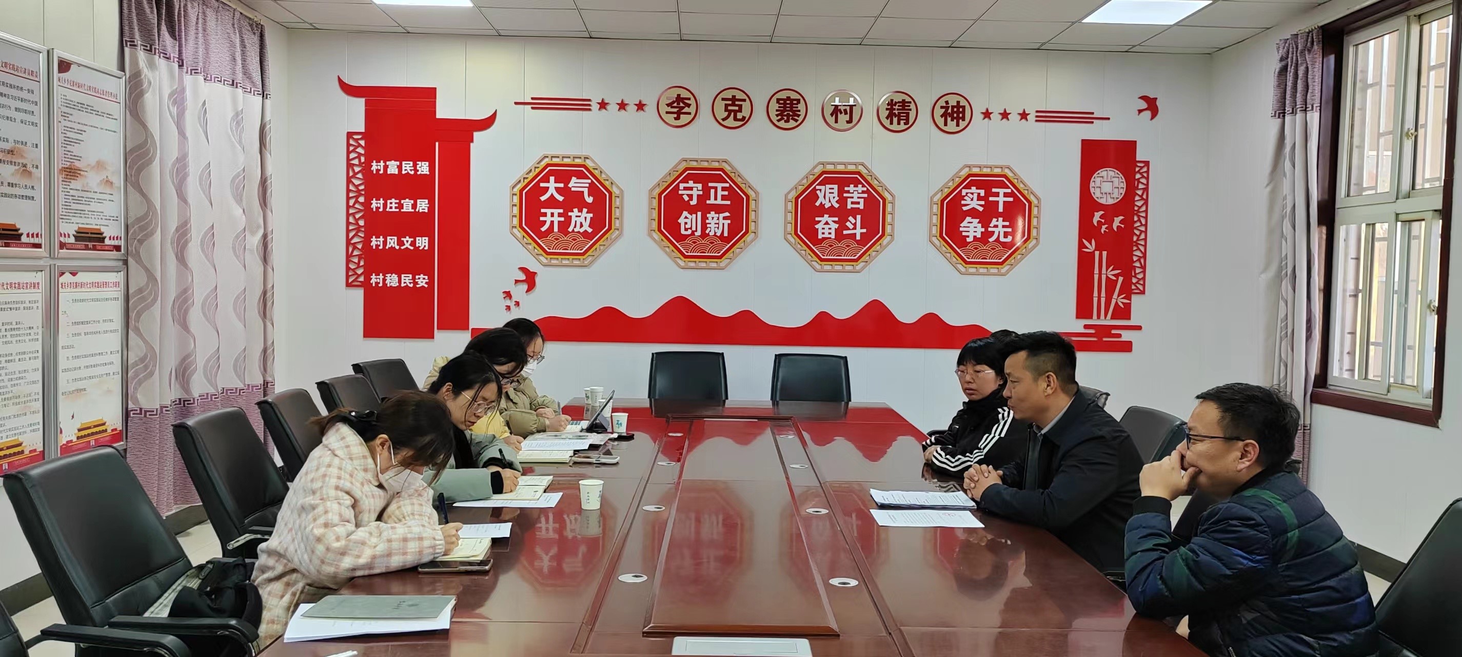 调研过程中,荥阳市李克寨村支书苏胜利及其他村“两委”委员分别围绕产业、文化、人才、生态、组织及网格化治理融入等6个方面详细介绍了李克寨村“双治理”的创新方法和成果。网格工作人员代表介绍了自己在乡村治理中发挥的作用及心得体会。调研团队对李克寨村治理模式的独到之处进行了深入探讨。通过入户走访发现,李克寨村在党组织建设、人居环境改造、乡风文明培育等工作上做出了一系列有温度、有特色的探索,村民认同感、归属感强。调研同时收集了鲜活的田野素材,为乡村治理体系和治理能力现代化路径优化和方案推广的工作积累了一定的经验,丰富了研究案例。