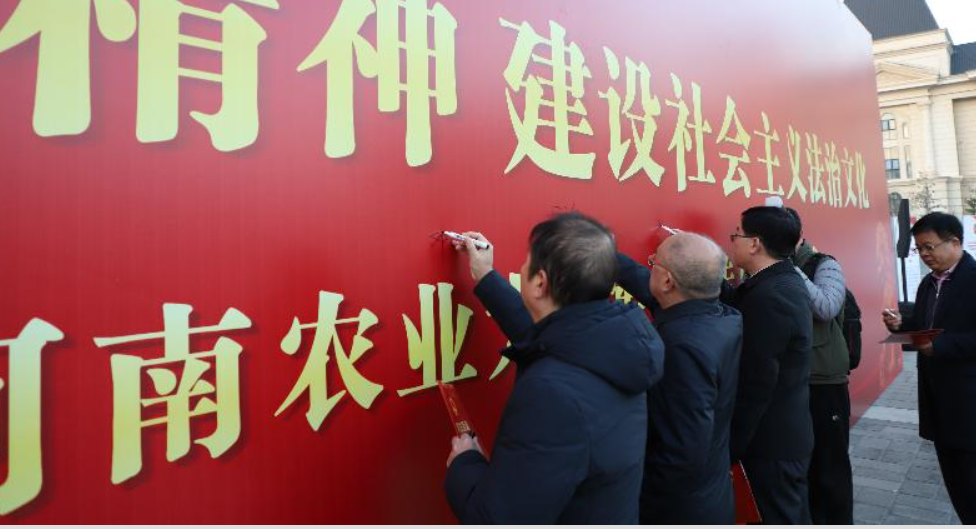 在龙子湖校区中心广场举办了以“深入学习宣传习近平法治思想 大力弘扬宪法精神”为主题的宪法宣传周启动仪式。校党委副书记游舸,副校长郭战伟,校党委委员、宣传部长邓振营,校党委学生工作部部长、学生处处长徐峰,校团委书记贾云飞,校党委研究生工作部部长代莉,校政策法规办公室主任闫俊萍,91自拍