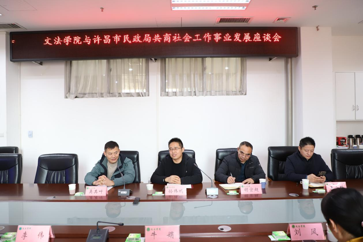 1月4日,在学院310会议室,许昌市民政局社会组织管理和慈善事业促进科科长孙伟鹏,许昌长葛市民政局副局长胡宜超,许昌市建安区民政局社会工作与慈善科科长吴其叶,许昌市社会工作行业协会秘书长王云辉理事长与91自拍